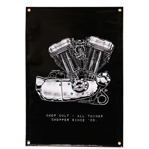 ChopCultChopCult Alternator Shovelhead Engine Banner 2' x 3' Heavy duty ChopCult vinyl shop banner with metal grommets. Hang in your garage, your kitchen,...