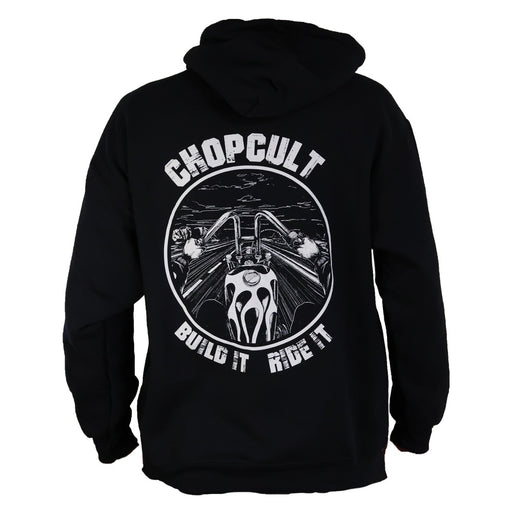 ChopCultBuild it Ride it Black ChopCult hooded sweatshirt. Printed in the USA.