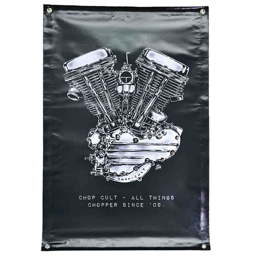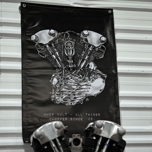 ChopCultChopCult Panhead Engine Banner 2' x 3' Heavy duty ChopCult vinyl shop banner with metal grommets. Hang in your garage, your kitchen, your bathroom...