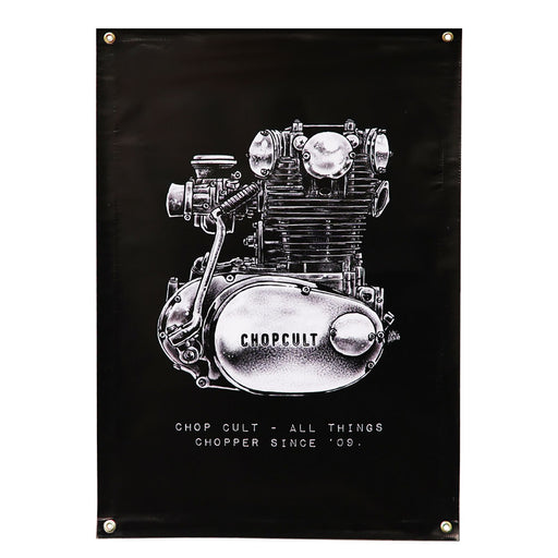 ChopCultChopCult XS650 Engine Banner 2' x 3' Heavy duty ChopCult vinyl shop banner with metal grommets. Hang in your garage, your kitchen, your bathroom o...